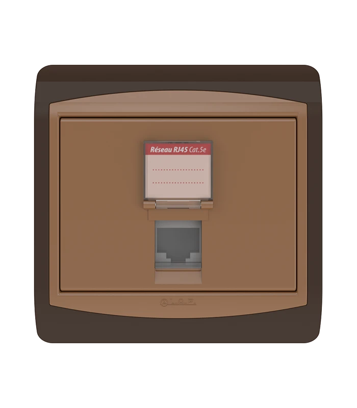 | Établir une connexion téléphonique ou informatique, avec porte étiquette d'identification et obturateur. | |